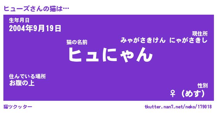 | ヘコむあだ名 | 『ヒュにゅー』『酢こんぶ』『ヒュを』 |