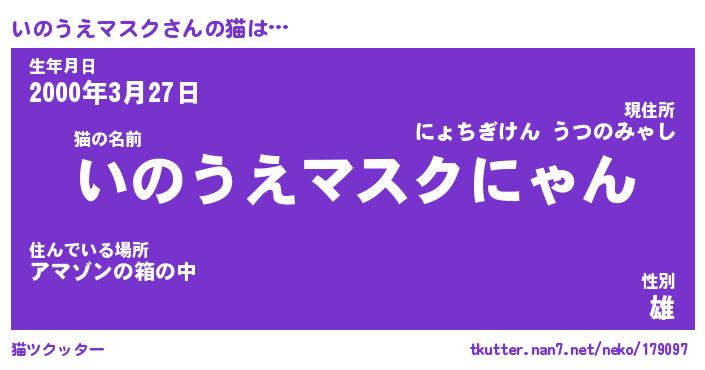 | 市区町村名 | 『東いのうえマスク区』『いの幌市』 |