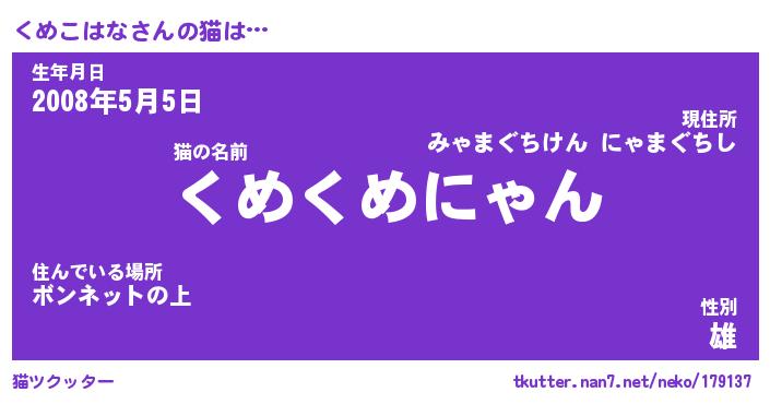 | 2回繰り返すあだ名 | 『くめくめ』『くくめめ』『ぬれぬれ』 |