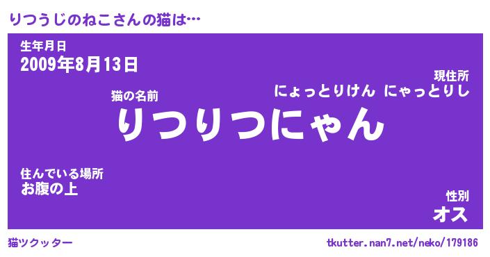 | 意味不明あだ名 | 『ペロリンりつうじのねこ』 |
