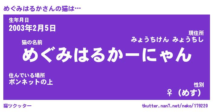 | 2回繰り返すあだ名 | 『めぐめぐ』『めめぐぐ』『うずうず』 |
