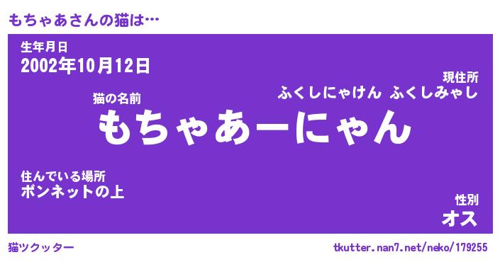 | 意味不明あだ名 | 『ペロリンもちゃあ』『永久保存もちゃあ』 |