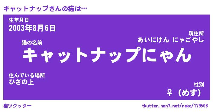 | 意味不明あだ名 | 『ペロリンキャットナップ』 |