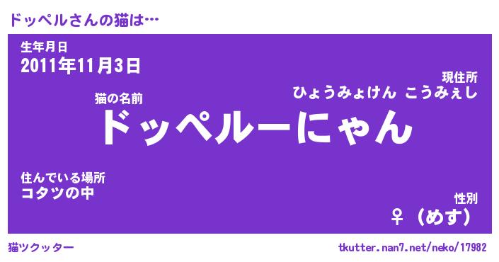 | 意味不明あだ名 | 『ペロリンドッペル』『永久保存ドッペル』 |