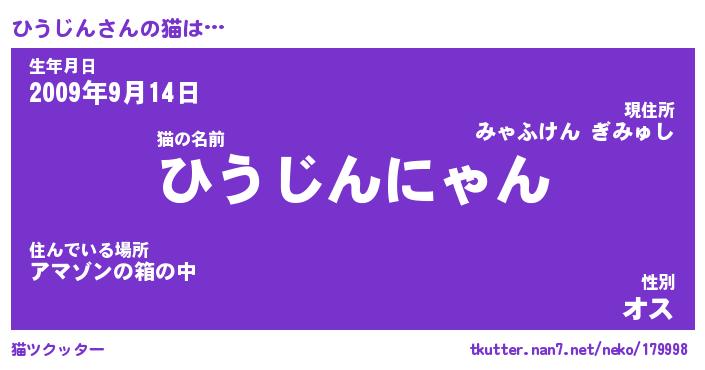 | 意味不明あだ名 | 『ペロリンひうじん』『永久保存ひうじん』 |