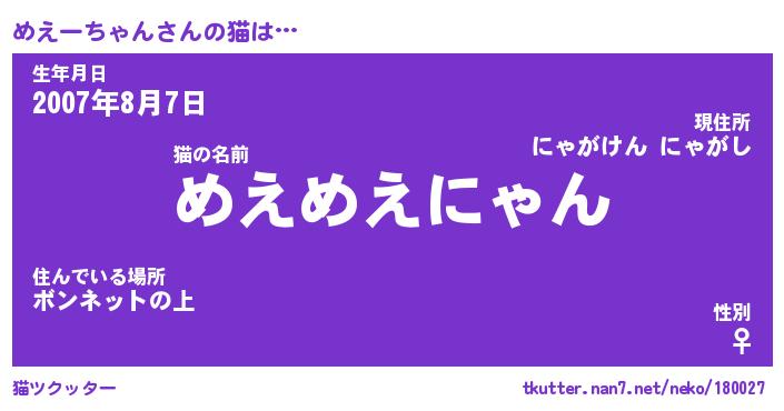 | ポケモン風あだ名 | 『メエチュウ』『メエーダネ』 |