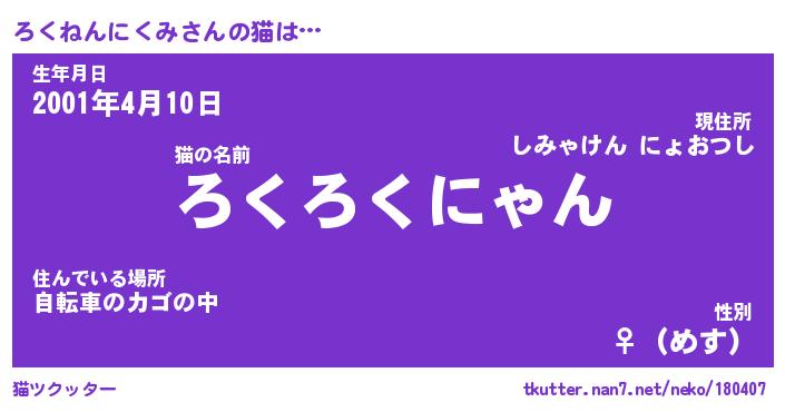 | 生年月日? …「くろねこ」 | 8月01日 10:16 |