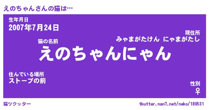 | 生年月日? …「くろねこ」 | 8月01日 10:16 |