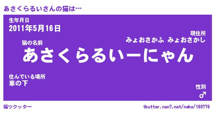 | 生年月日? …「くろねこ」 | 8月01日 10:16 |