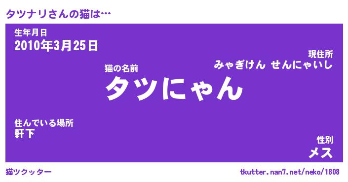 | 意味不明あだ名 | 『ペロリンタツナリ』『永久保存タツナリ』 |