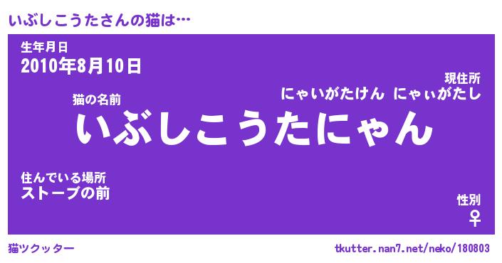 | 男性向けラノベタイトル風あだ名 | 『いぶしこうたの憂鬱』 |
