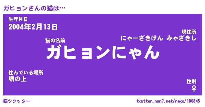 | ポケモン風あだ名 | 『ガヒチュウ』『ガヒョダネ』 |