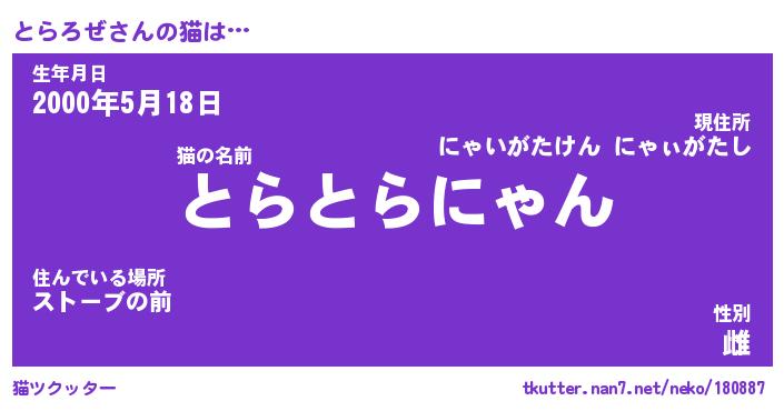 | 意味不明あだ名 | 『ペロリンとらろぜ』『永久保存とらろぜ』 |