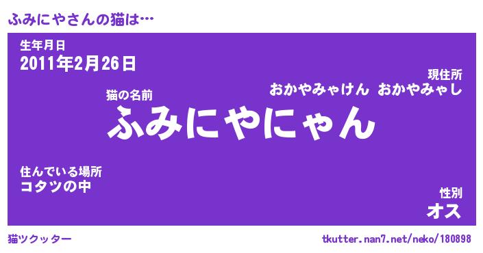 | 男性向けラノベタイトル風あだ名 | 『ふみにやの憂鬱』 |