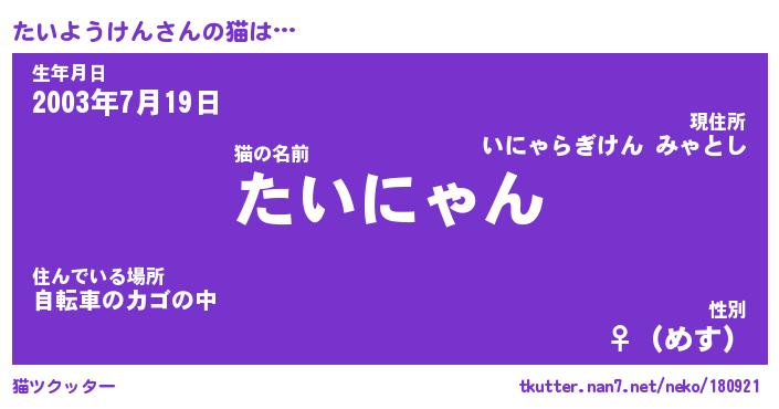 | 生年月日? …「くろねこ」 | 8月01日 10:16 |
