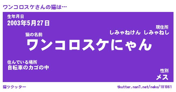 | 生年月日? …「くろねこ」 | 8月01日 10:16 |