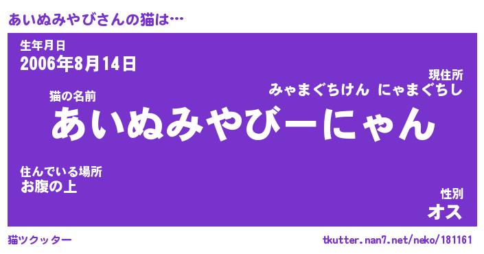 | 欧米人風あだ名 | 『マイケルあいぬみやび』 |