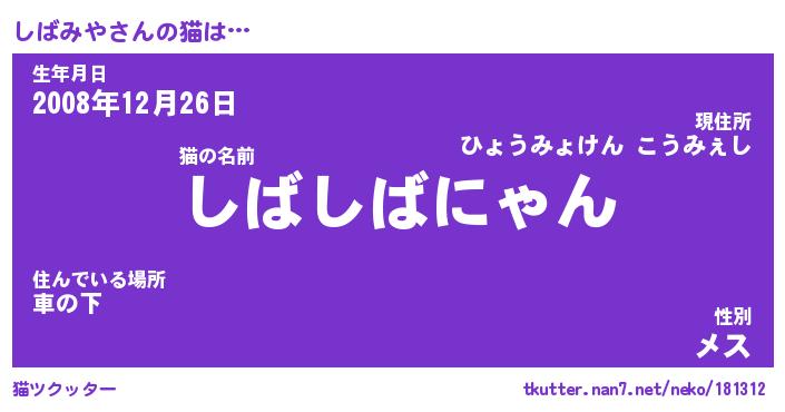 | 意味不明あだ名 | 『ペロリンしばみや』『永久保存しばみや』 |