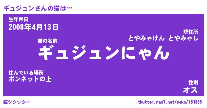 | ポケモン風あだ名 | 『ギュチュウ』『ギュジダネ』 |