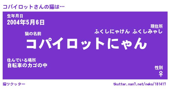 | 生年月日? …「くろねこ」 | 8月01日 10:16 |
