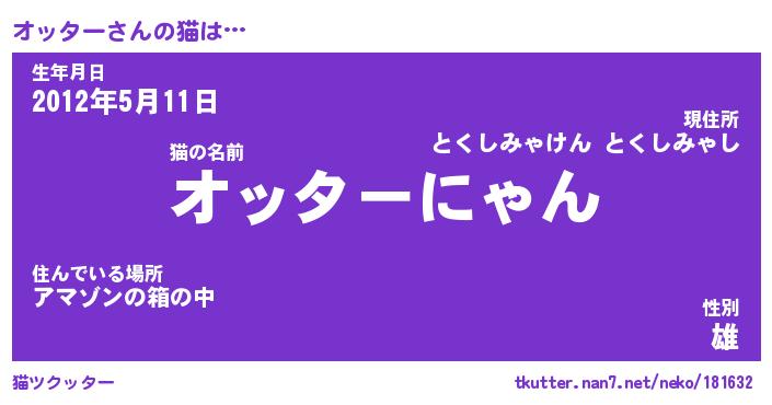 | 意味不明あだ名 | 『ペロリンオッター』『永久保存オッター』 |