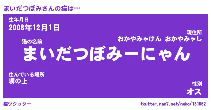 | ツイッター | まいだつぼみさんのツイッターID『fukuyoka_man』 |