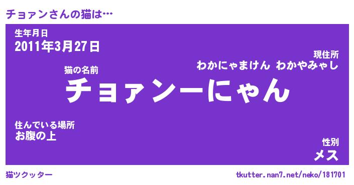 | 意味不明あだ名 | 『ペロリンチョァン』『永久保存チョァン』 |