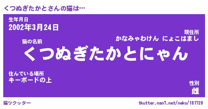 | 肩書あだ名 | 『くつぬぎたかと店長』 |