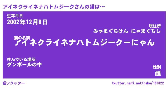 | 生年月日? …「くろねこ」 | 8月01日 10:16 |