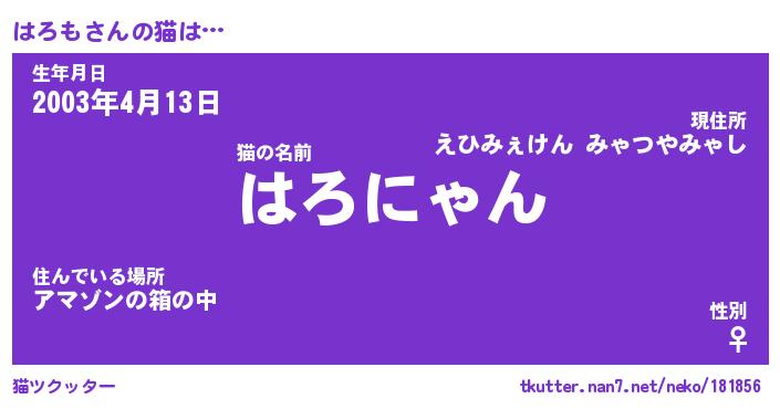 | 生年月日? …「くろねこ」 | 8月01日 10:16 |