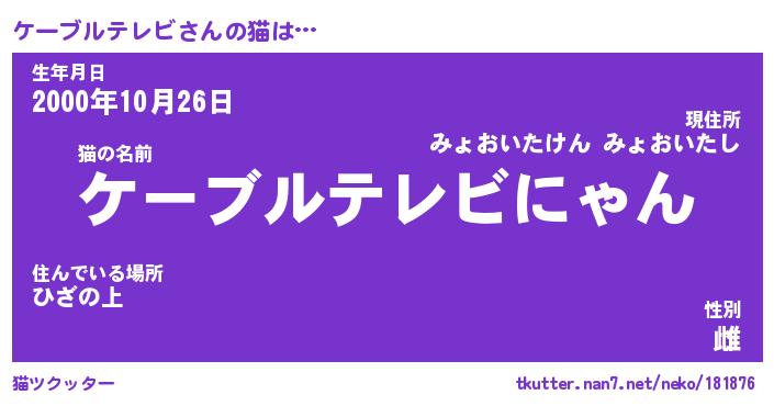 | 男性向けラノベタイトル風あだ名 | 『ケーブルテレビの憂鬱』 |