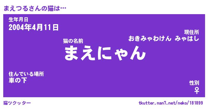| 意味不明あだ名 | 『ペロリンまえつる』『永久保存まえつる』 |