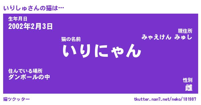 | 肩書あだ名 | 『いりしゅCEO』『いりしゅ総理大臣』 |