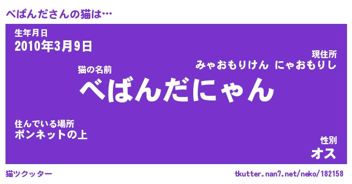 | 意味不明あだ名 | 『ペロリンべばんだ』『永久保存べばんだ』 |