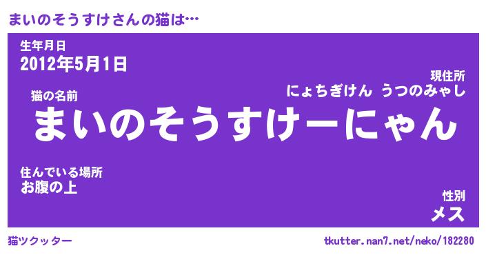 | ツイッター | まいのそうすけさんのツイッターID『fukuyoka_idle』 |