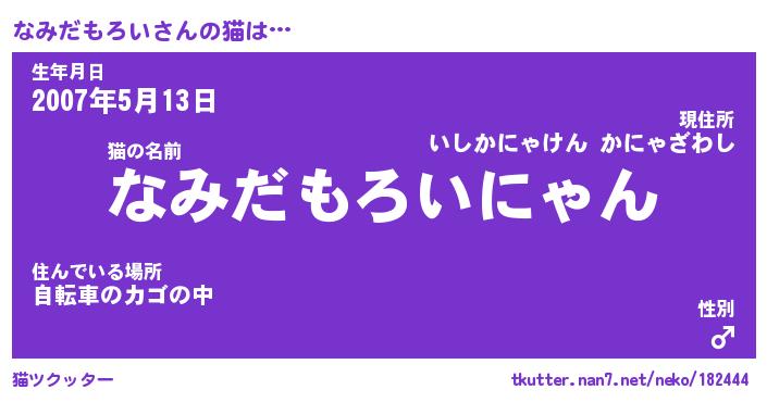| 男性向けラノベタイトル風あだ名 | 『なみだもろいの憂鬱』 |