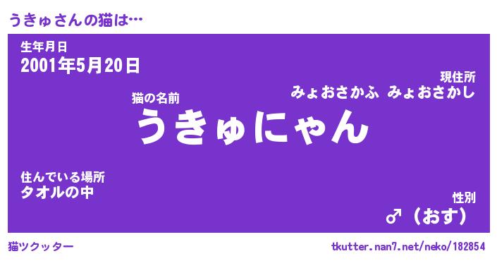 | 男性向けラノベタイトル風あだ名 | 『うきゅの憂鬱』 |