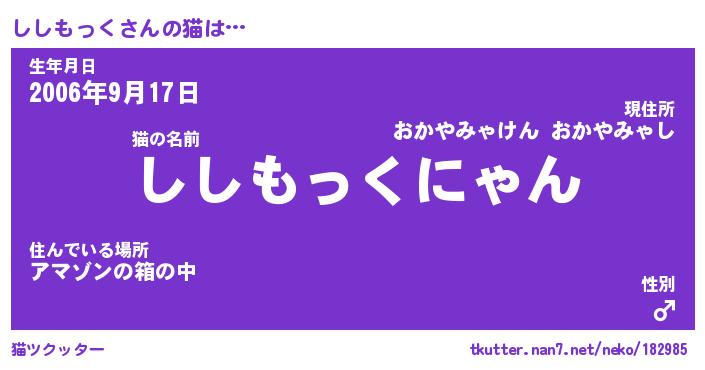 | 男性向けラノベタイトル風あだ名 | 『ししもっくの憂鬱』 |