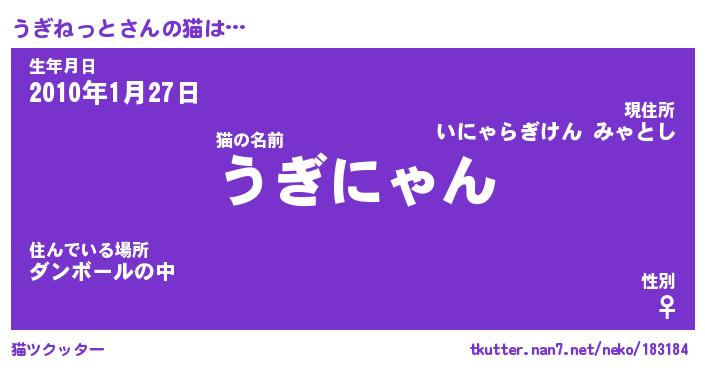 | 男性向けラノベタイトル風あだ名 | 『うぎねっとの憂鬱』 |