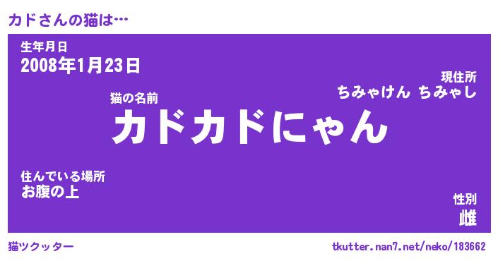 | 2回繰り返すあだ名 | 『カドカド』『カカドド』『ぬれぬれ』 |