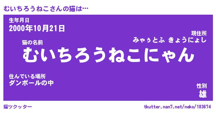 | 女子向けラノベタイトル風あだ名 | 『(仮)むいちろうねこのやんごとなき事情』 |