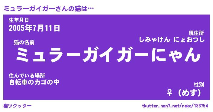 | 女子向けラノベタイトル風あだ名 | 『(仮)ミュラーガイガーのやんごとなき事情』 |