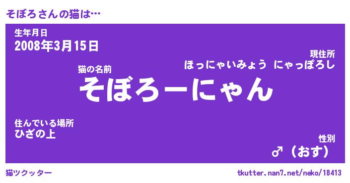 | ポケモン風あだ名 | 『ソボチュウ』『ソボロダネ』 |