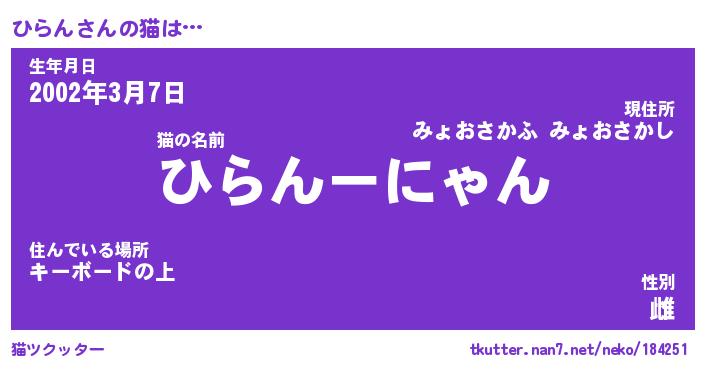 | 生年月日? …「くろねこ」 | 8月01日 10:16 |