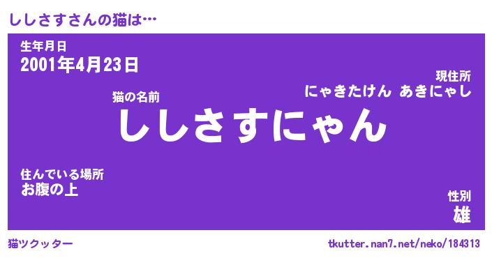 | 意味不明あだ名 | 『ペロリンししさす』『永久保存ししさす』 |