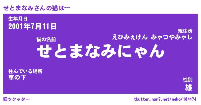 | ポケモン風あだ名 | 『セトチュウ』『セトマダネ』 |