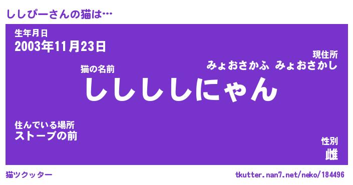 | 意味不明あだ名 | 『ペロリンししぴー』『永久保存ししぴー』 |