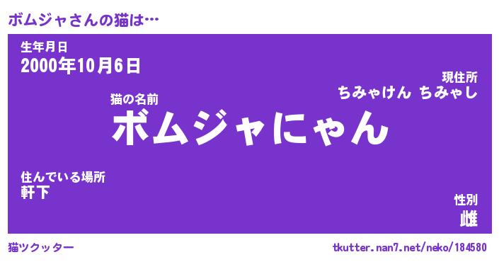 | 意味不明あだ名 | 『ペロリンボムジャ』『永久保存ボムジャ』 |