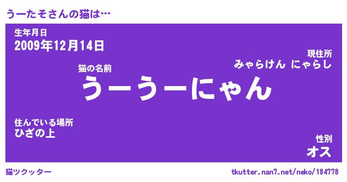 | ポケモン風あだ名 | 『ウーチュウ』『ウータダネ』 |