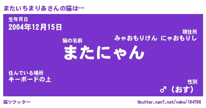 | 生年月日? …「くろねこ」 | 8月01日 10:16 |